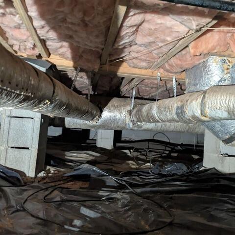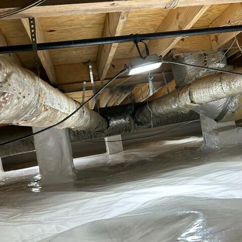 Jeff in Smyrna, TN, hired Frontier to install a radon mitigation system. The existing vapor barrier was not sealed, allowing soil gases to enter the crawl space. To create an airtight environment and ensure proper suction, Frontier fully encapsulated the crawl space. The radon is now drawn beneath the liner and vented safely through the mitigation pipe, where it disperses above the roofline.