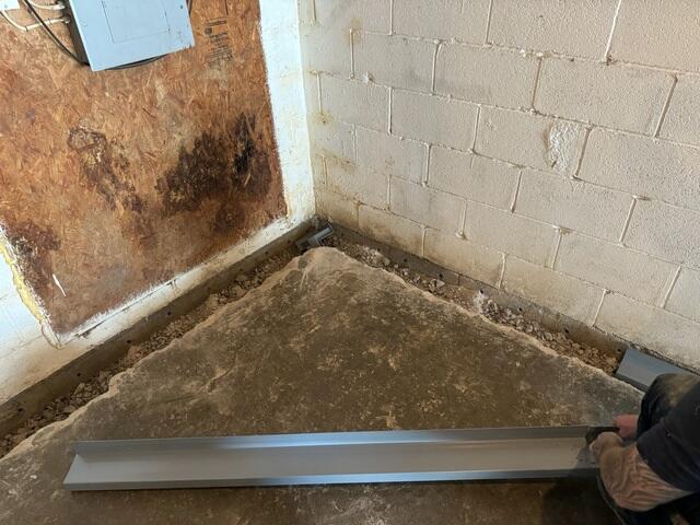 The WaterGuard system is being installed. It is placed in the trench dug with the weeping holes. After this part, it will be surrounded with clean gravel before being covered.