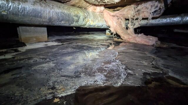 This crawl space needed some professional attention. Water, mold, debris, insulation, and dirt riddled this crawl space, leading to air quality and structural issues in the home.