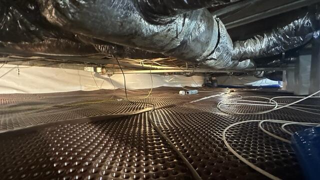 This dimpled plastic sheet material promotes good drainage over the entire crawl space floor.