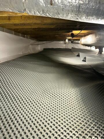 We start the installation of the CleanSpace crawl space encapsulation system with a vapor barrier on the crawl space floor to eliminate excess moisture and musty smells. Crawl space insulation is added to the walls for added comfort and energy efficiency. What you get is a dry, usable crawl space and improved comfort and healthier air inside your home.