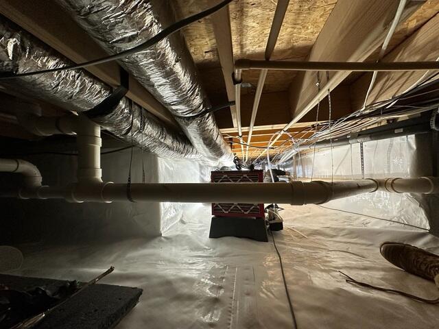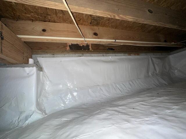 We start the installation of the CleanSpace crawl space encapsulation system with a vapor barrier on the crawl space floor to eliminate excess moisture and musty smells. Crawl space insulation is added to the walls for added comfort and energy efficiency. What you get is a dry, usable crawl space and improved comfort and healthier air inside your home.