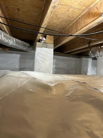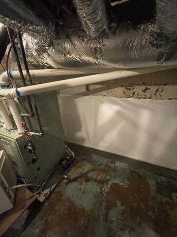 7. 20mil CleanSpace Liner lines the entire below grade space and sealed at the rim joists.